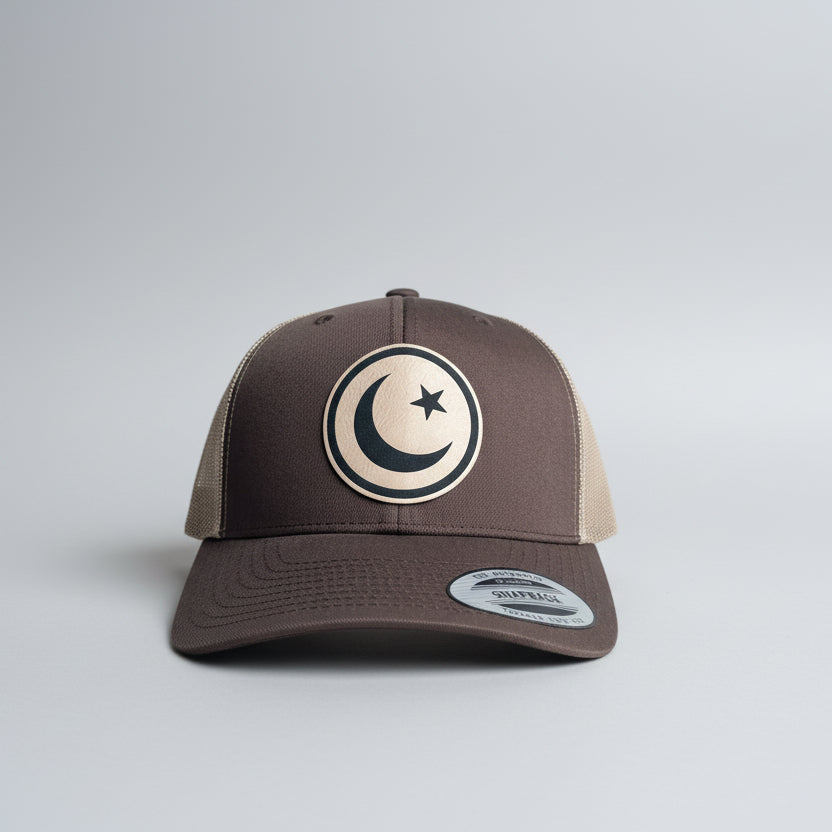The Crescent & Star Trucker Hat is designed with a high-quality leatherette patch that is engraved with the symbol of Islam. All hats are made with the classic Yupoong 6606- the quintessential style for hats.